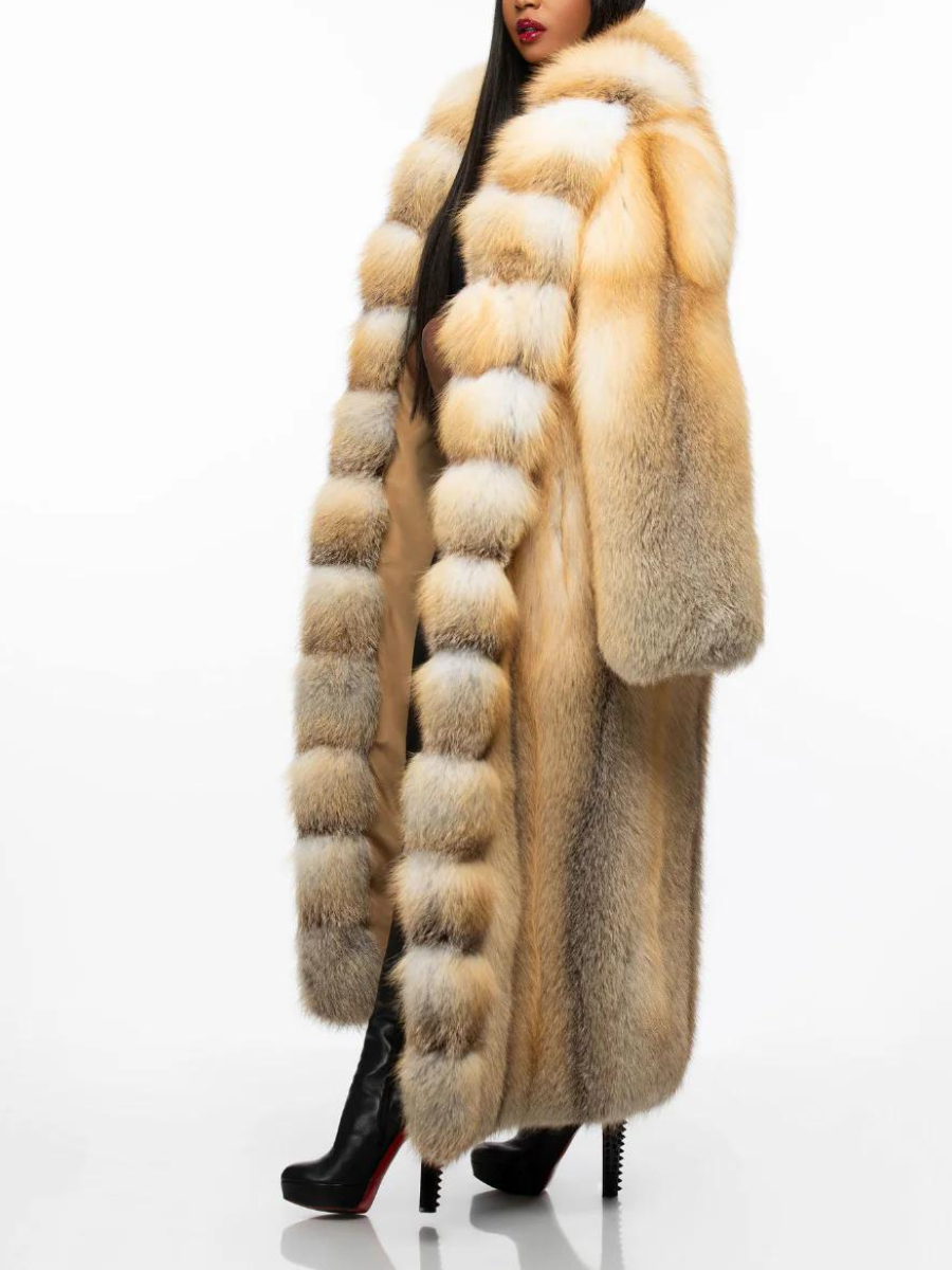 Cream & Tan Ombre Faux Fur Maxi Coat